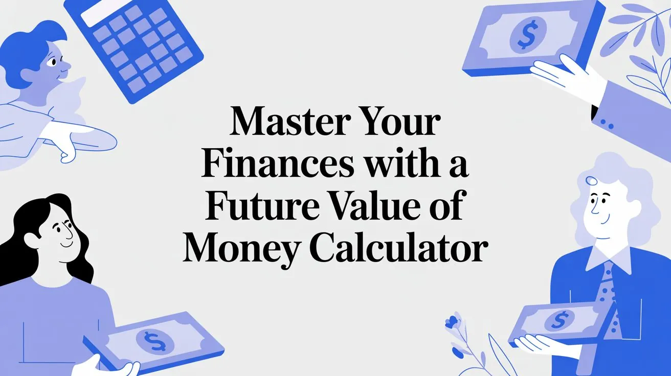 A future value of money calculator is a surprisingly powerful tool. At its core, it shows you what a chunk of cash invested today could grow into at a specific point down the road. It does this by taking your initial investment, applying an expected interest rate over a set period, and revealing the potential of your money. This calculation isn’t just a party trick for finance nerds; it’s the bedrock of any serious long-term financial plan, from figuring out your retirement number to hitting a savings goal.